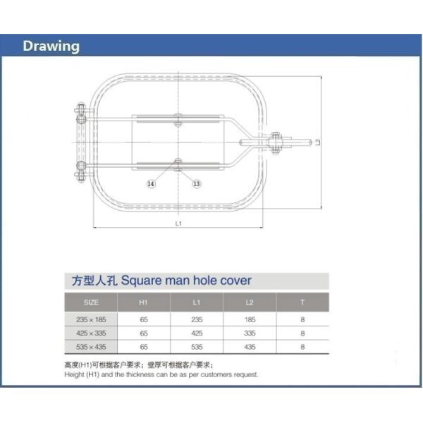 Matt Surface Wrench Type Square Tank Manhole Cover Oval Mayway For Vessel